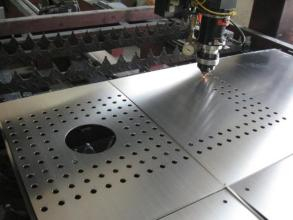 激光切割:利用高功率密度激光束照射被切割材料,使材料很快被加熱至汽化溫度,蒸發形成孔洞,隨著光束對材料的移動,孔洞連續形成寬度很窄的(如0.1mm左右)切縫,完成對材料的切割,激光切割厚板相對會漂亮很多,表面光滑、平整、精度高的特點。